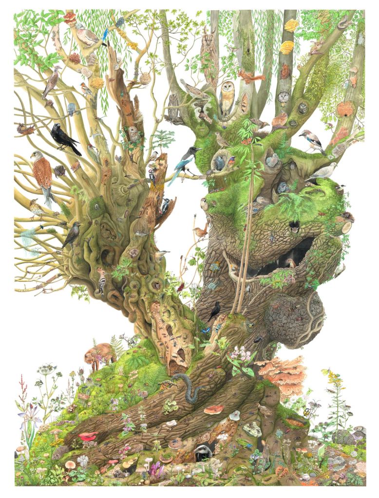 « Trogne – arbre habitat », 180/240cm, Aquarelle, Encre de Chine, Gouache, 2023-2024 avec la collaboration de Dominique Mansion, Alexandre Boissinot et Laurent Larrieu.