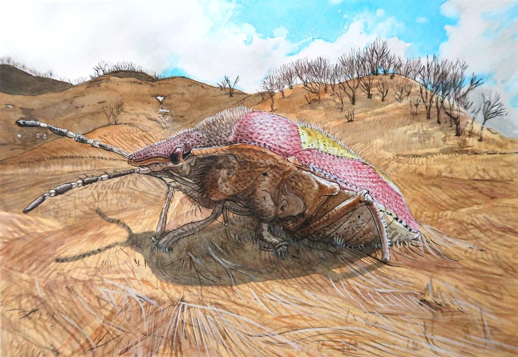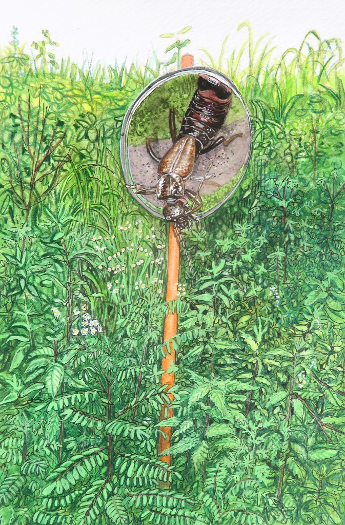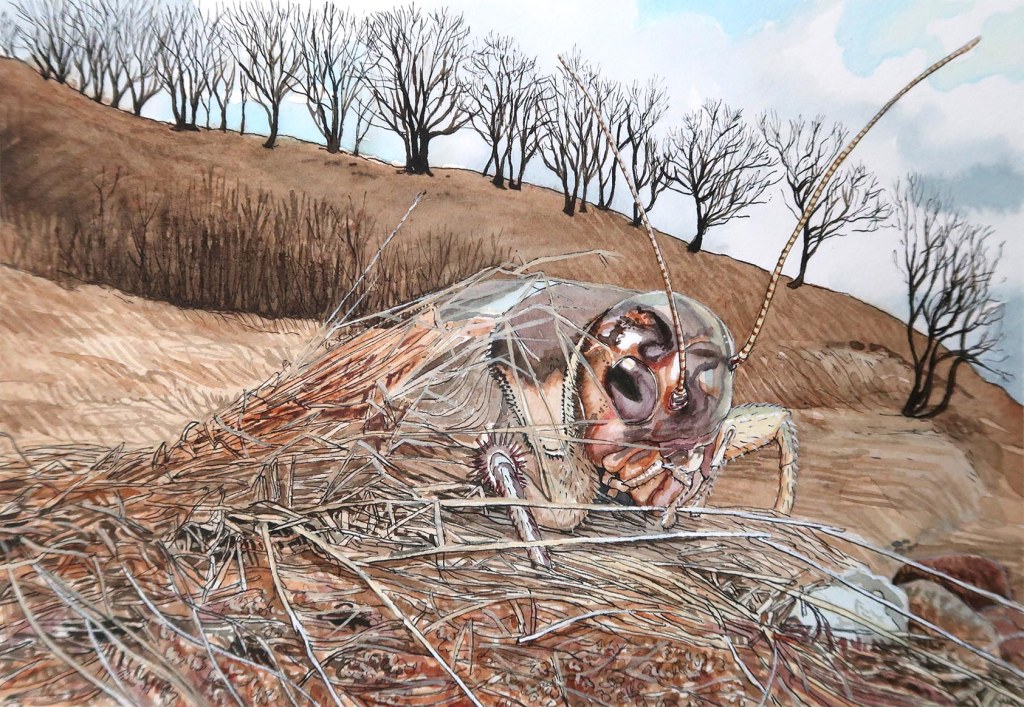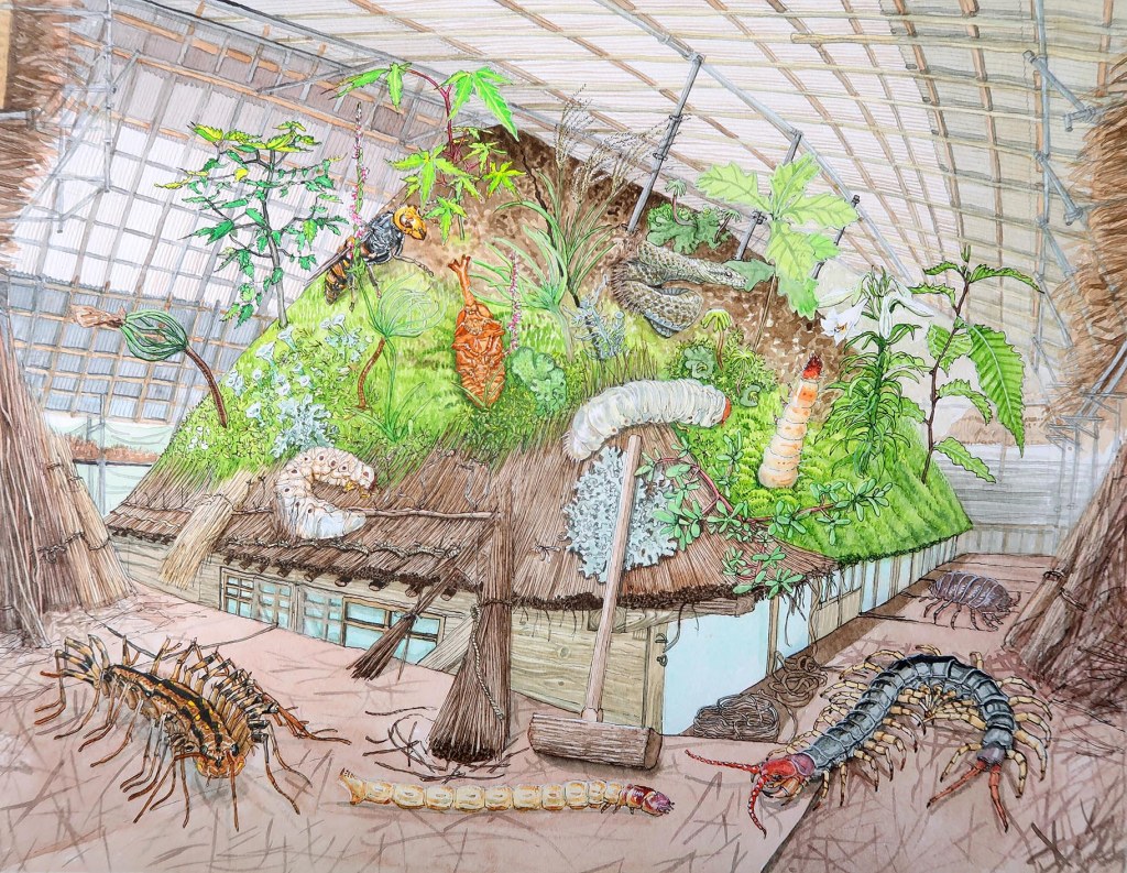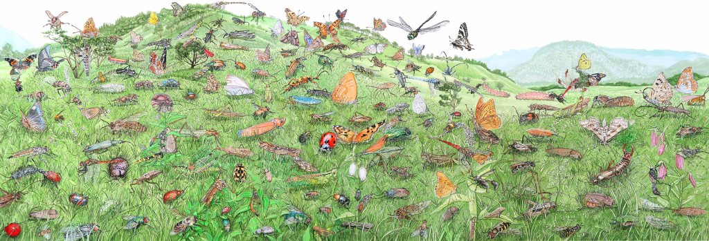 La plupart de mes dessins sont basés sur des recherches menées par Takashi Maruyama, membre de la Japanese Beetle Society, et le professeur Hideyuki Ida de l’université de Shinshu (« The insect fauna of traditional chaume in Kotani Village, Nagano Prefecture »). Cette étude, réalisée dans la même prairie de Miscanthus a permis de documenter 651 espèces (non publiées) de la faune d’insectes locale.