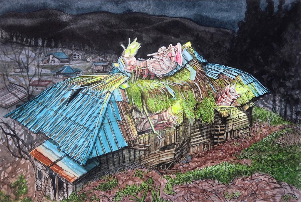 Des créatures telles que les insectes, les mammifères et les poissons sont énigmatiques et possèdent un mode d’existence étranger au notre, celui des humains. En tant que citadin, j’ai tendance à idéaliser ses êtres vivants et j’essaie de garder en tête que les gens qui travaillent dans les champs, qui vivent au jour le jour en cultivant la terre, perçoivent différemment les insectes et les mammifères qui peuvent menacer le fruit de leur travail.